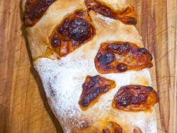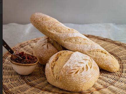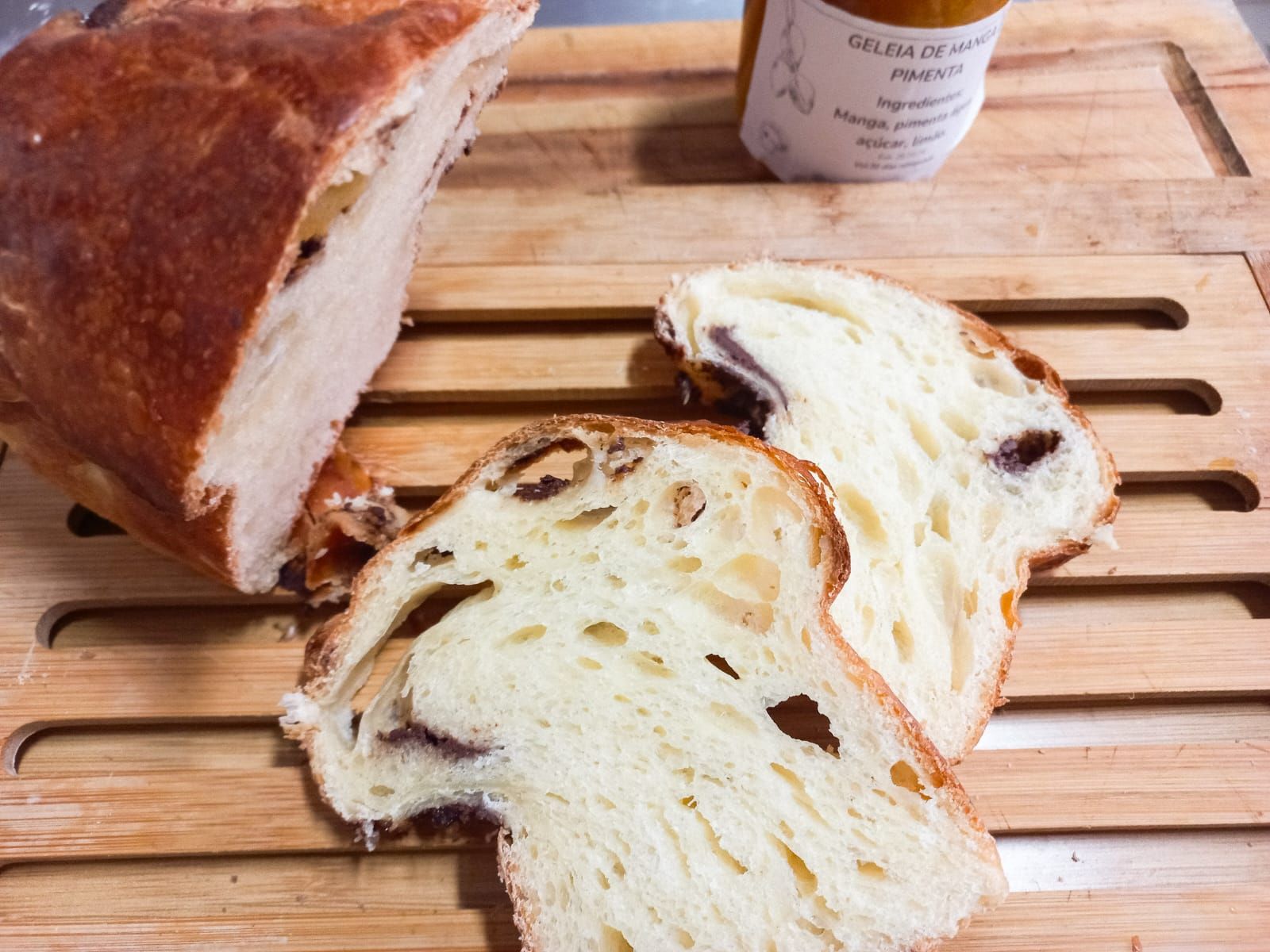 Baguete de fermentação natural com tomate seco, casca crocante e miolo macio e aromático, com sabor levemente adocicado e profundo.